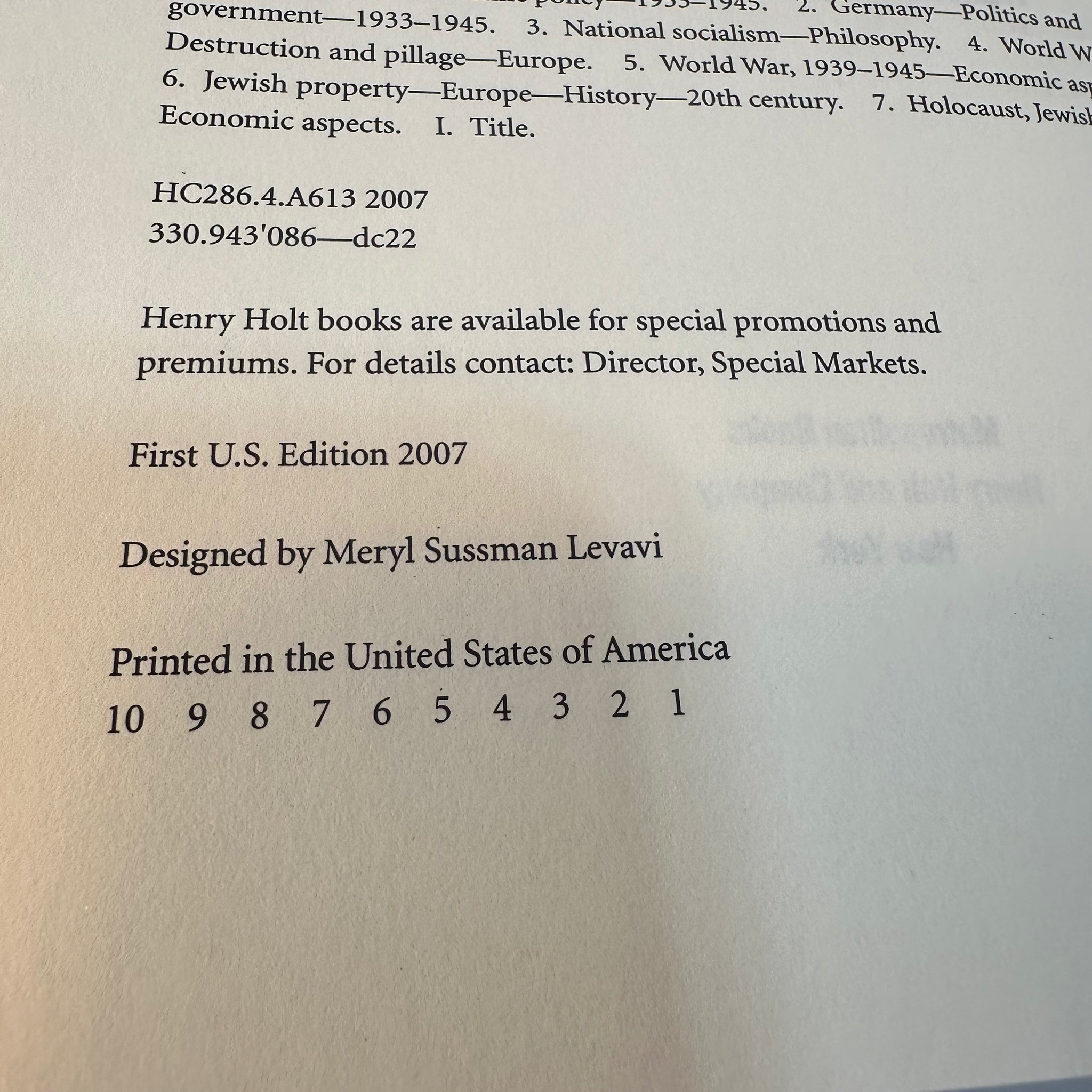 "Hitler's Beneficiaries: Plunder, Racial War, and the Nazi Welfare State" by Götz Aly