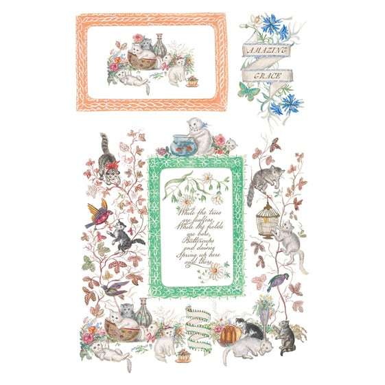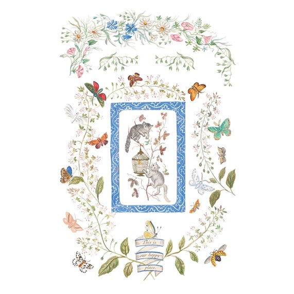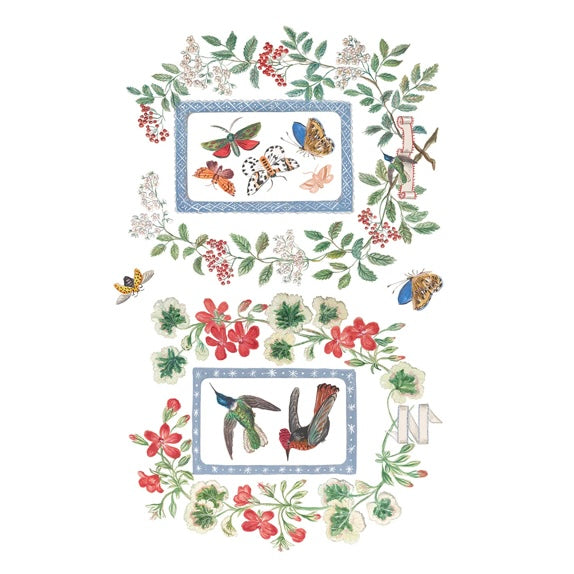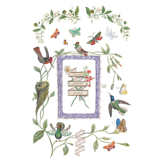 The Emily Claire – 8-Page 8x12" Transfer Pad comes from an 1868 family album belonging to Miss Emily Clare Harvey, the artwork began as her pencil and watercolor illustrations lovingly added around her family’s portraits. Cooper Hewitt preserved the album with its whimsical, beautifully hand-painted details. The set includes charming elements like kittens, hummingbirds, butterflies, banners, and even a proud little rooster—each one quirky, delicate, and full of character.