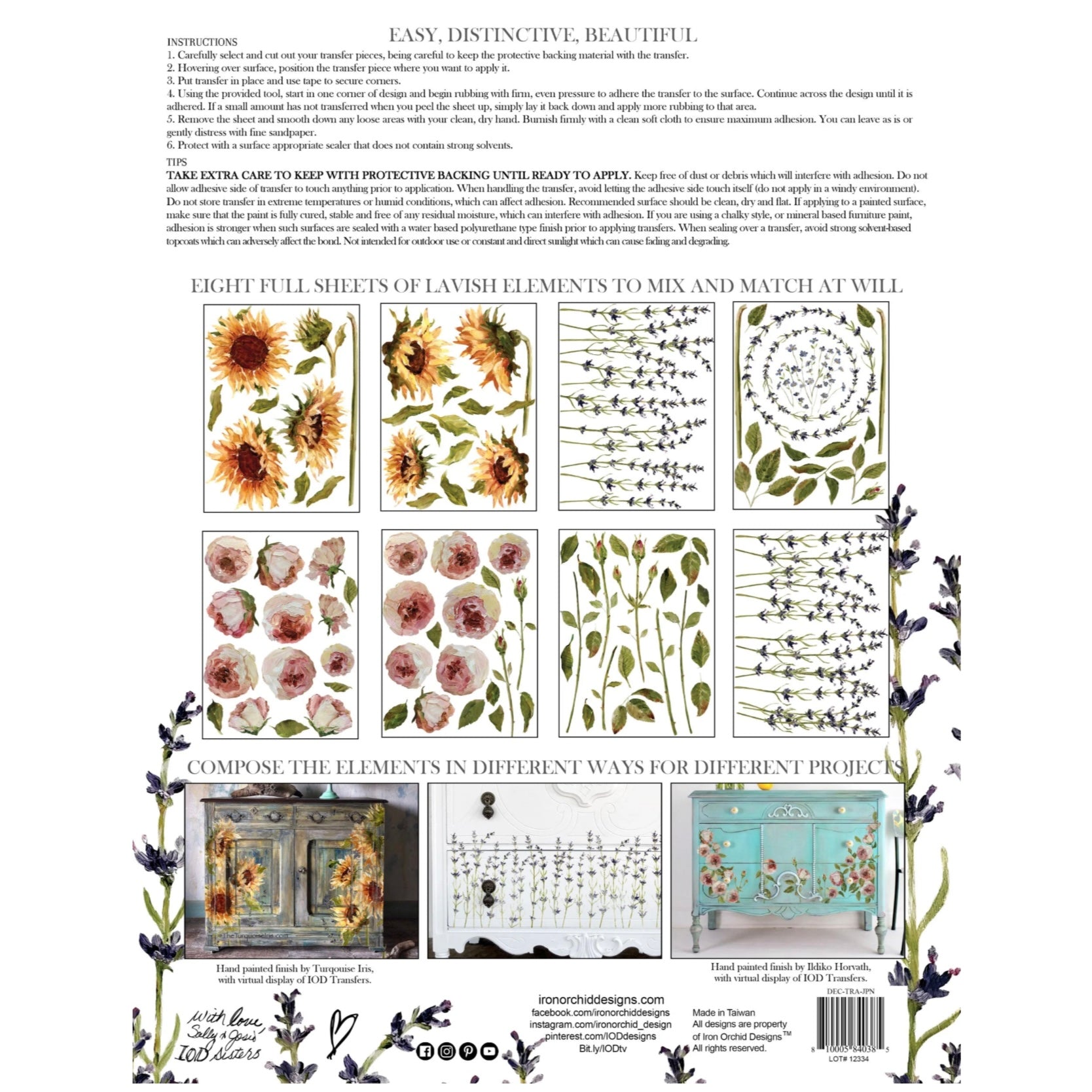 Iron Orchid Designs Painterly Florals Rub On Transfer Pad, 8 Pages, 12” x 16”