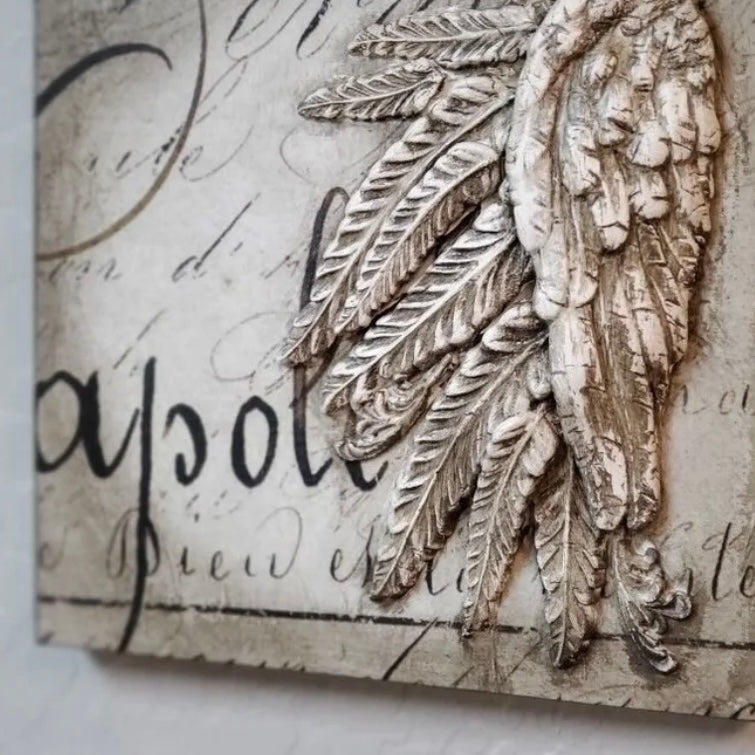 PRO TIP:  When we use air dry clay for casting, we love to glue them down while wet, right out of the mould. Inevitably, when they dry they crack a bit here and there because of shrinkage. We embrace this and use it to our vintagey advantage, BUT, if there are any that you aren't pleased with, simply back fill them with a bit more clay after they are dried.  If you don't want them to crack, after you pull the casting from mould, gently cover your air dry clay casting in cellophane - either glued in place or on a safe surface - ensuring you don't lose any details by pressing too hard.  The clay will take longer to dry, but cracking will be minimized!