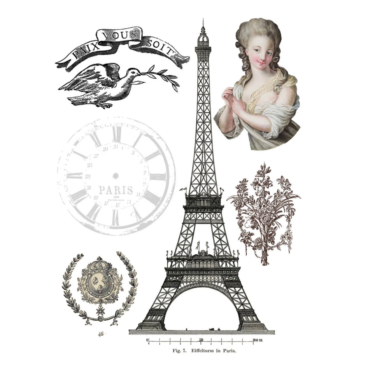 The Brocante IOD Transfer Pad features an elegant mix of vintage-inspired designs, capturing the charm of old-world French markets and rustic antiques. The imagery is rich with delicate florals, faded script, aged clocks, and ornate furniture, all rendered in soft, muted tones like dusty rose, taupe, and faded blues. The designs have a timeless, shabby-chic feel, with a weathered, antique look that evokes the beauty of well-loved treasures. With fine details and intricate linework, these transfers add a sense of history and nostalgia to any project. Whether used for scrapbooking, furniture upcycling, or art projects, the Brocante Transfer Pad offers a perfect way to bring vintage elegance and rustic charm to life.