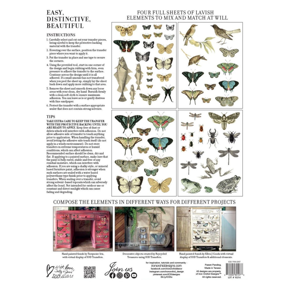 Iron Orchid Designs IOD Entomology Etcetera Rub On Transfer 4 Pages, 12” x 16”