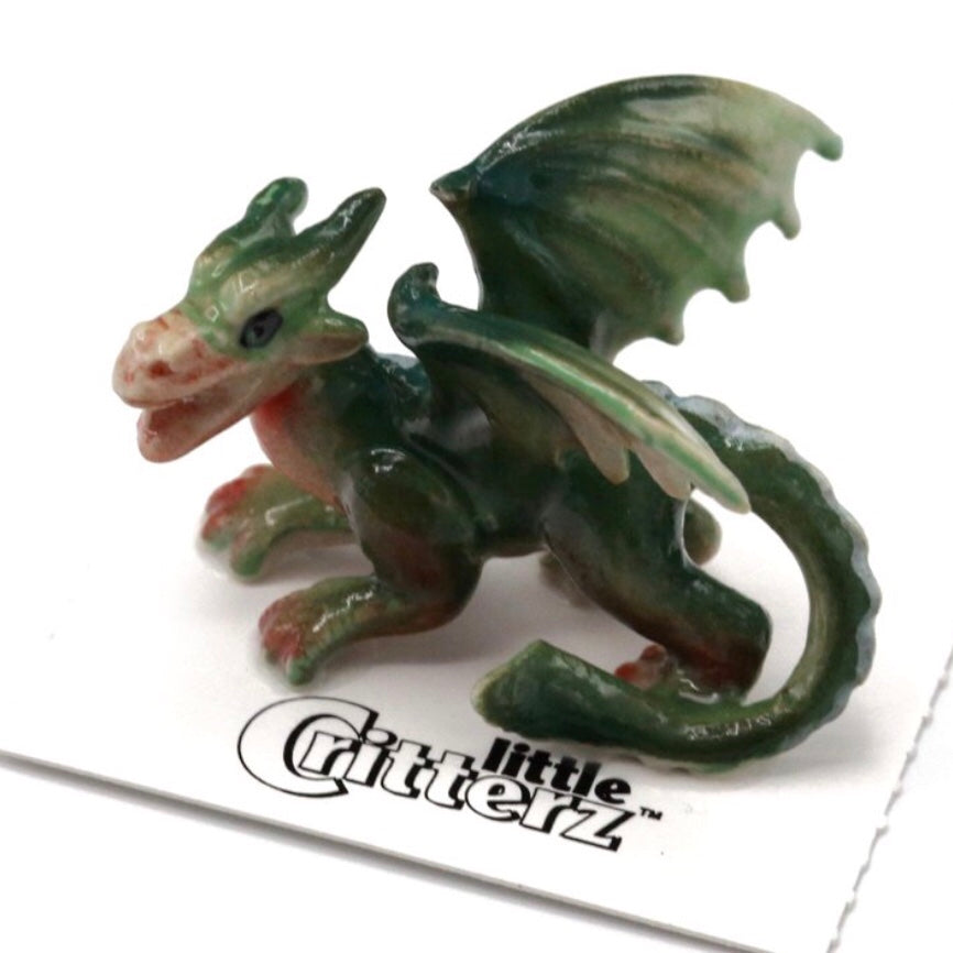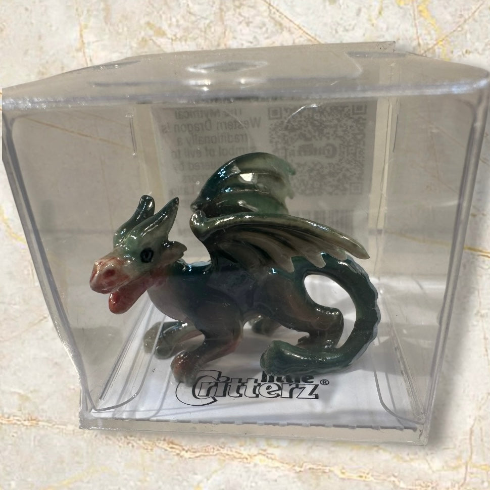 Little Critterz ® Dragon is an adorable, collectible carded miniature porcelain figurine, about 1.75 " high. Each Dragon is hand crafted and hand painted by skilled artisans. No two are exactly alike. A perfect gift for your friends, family or yourself and a delightful addition to any collection. Each Little Critterz Dragon comes in its own 2” x 2” clear recyclable box, complete with a story about the Dragon.