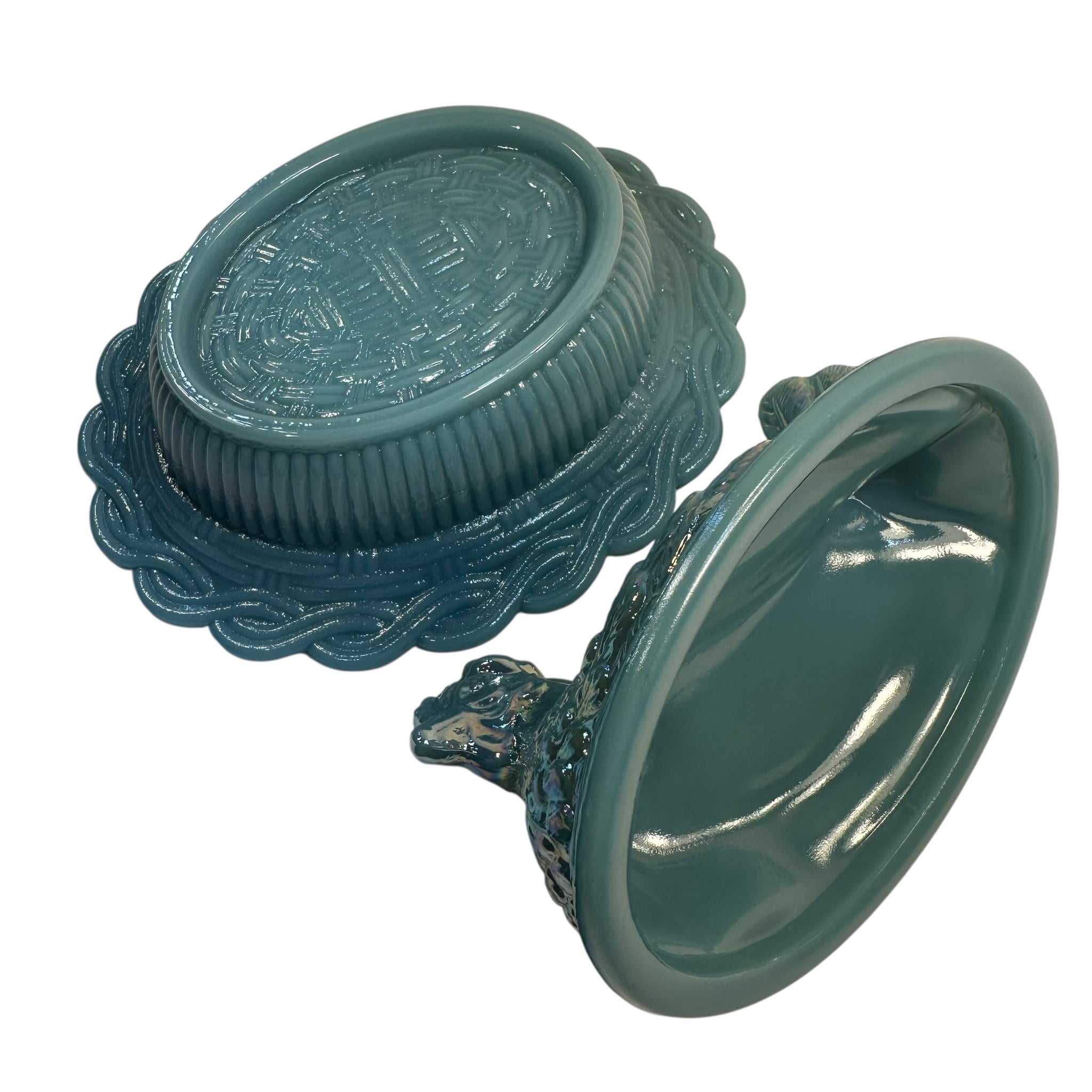 Mosser Hen On Nest Art Glass Carnival Georgia Blue 7” New Farmhouse Chicken Candy Dish New