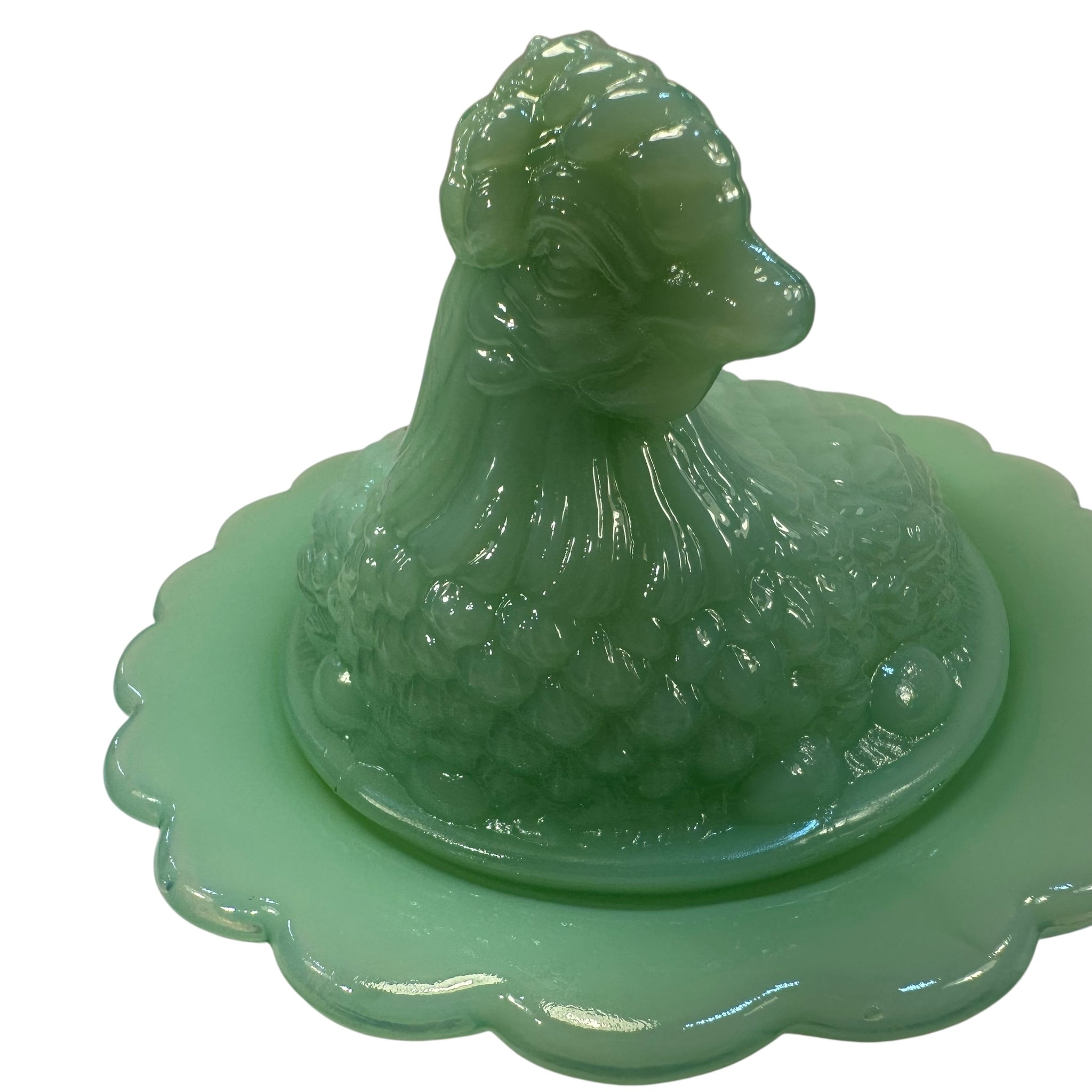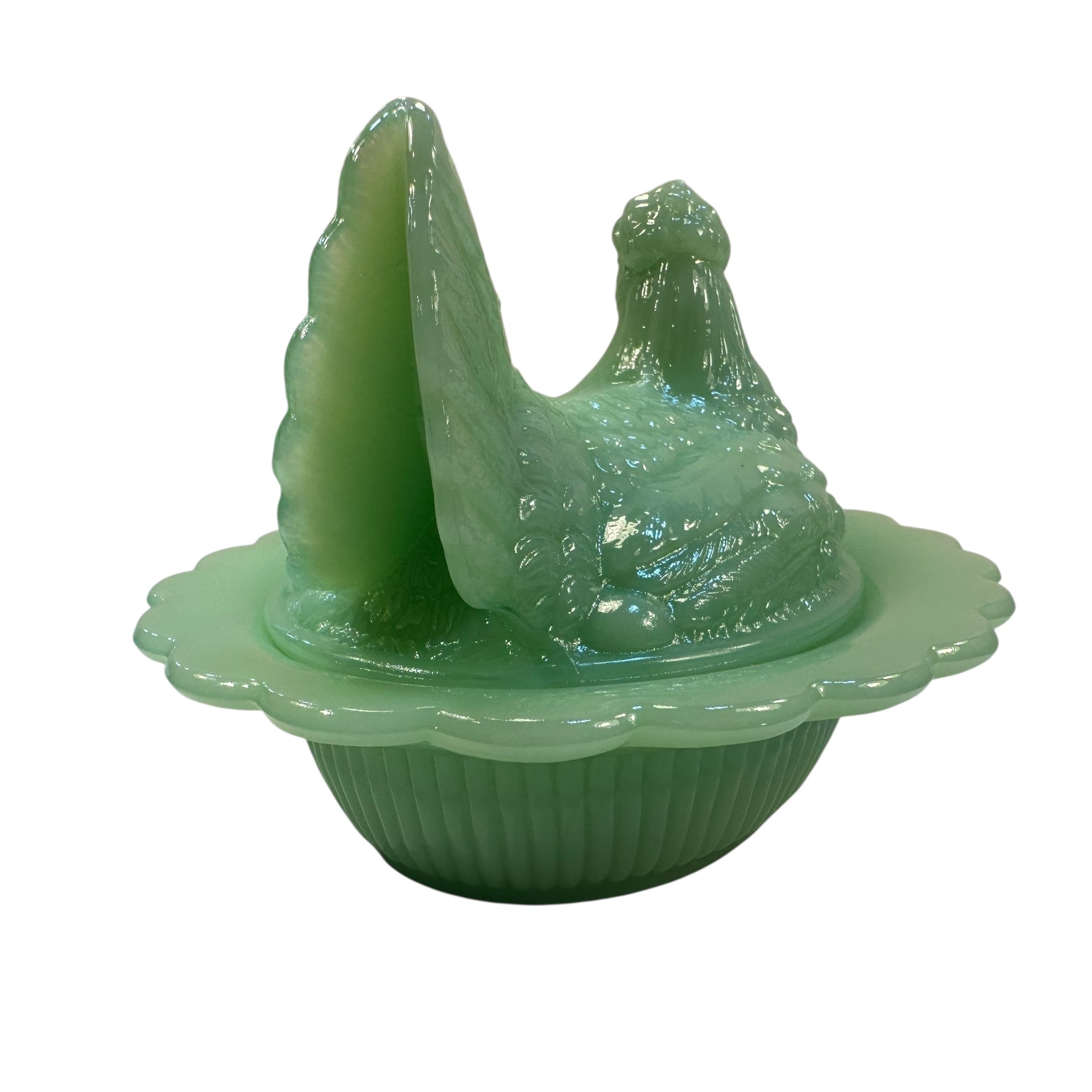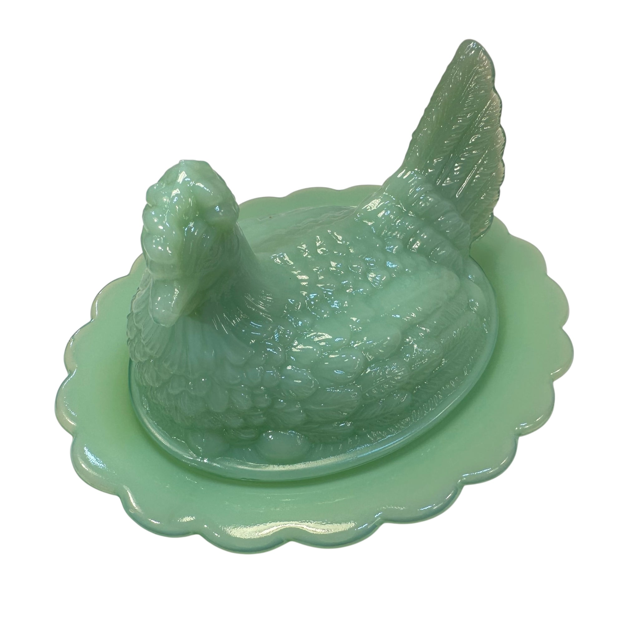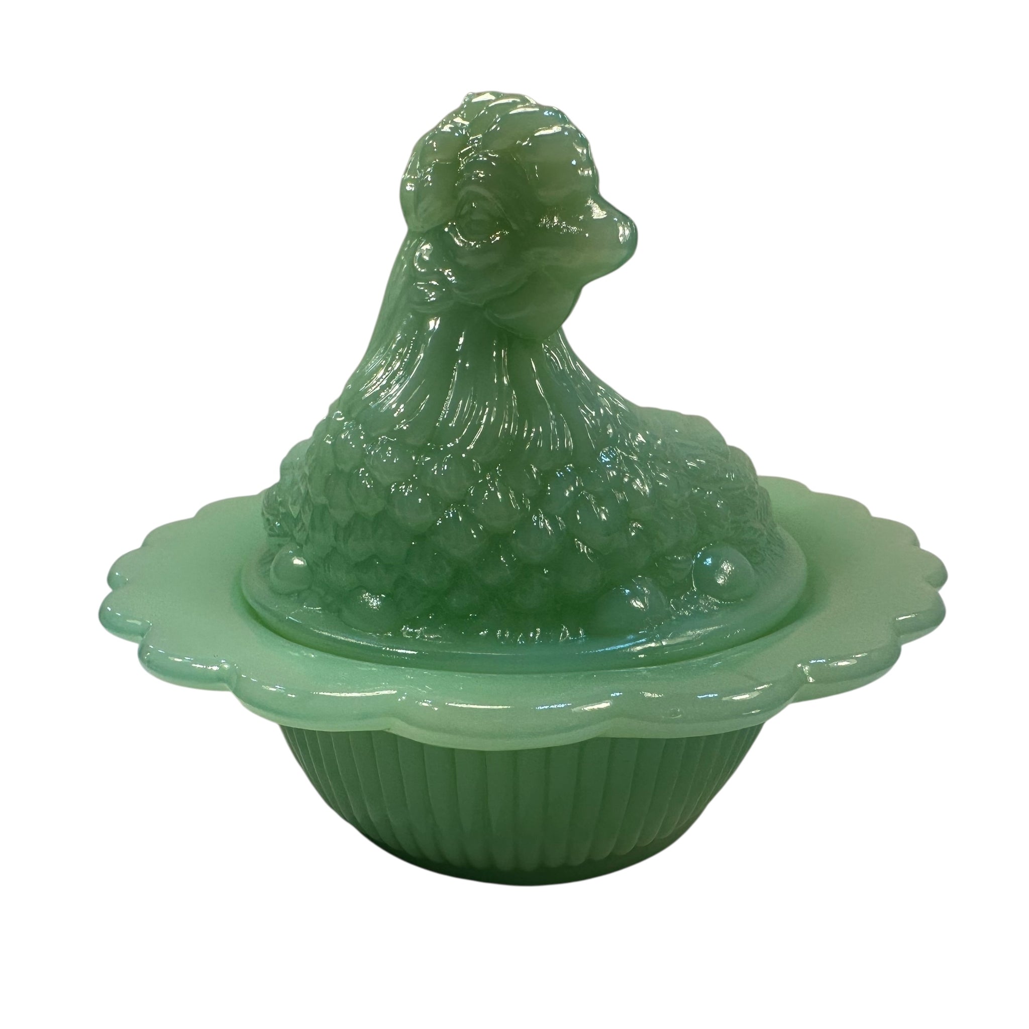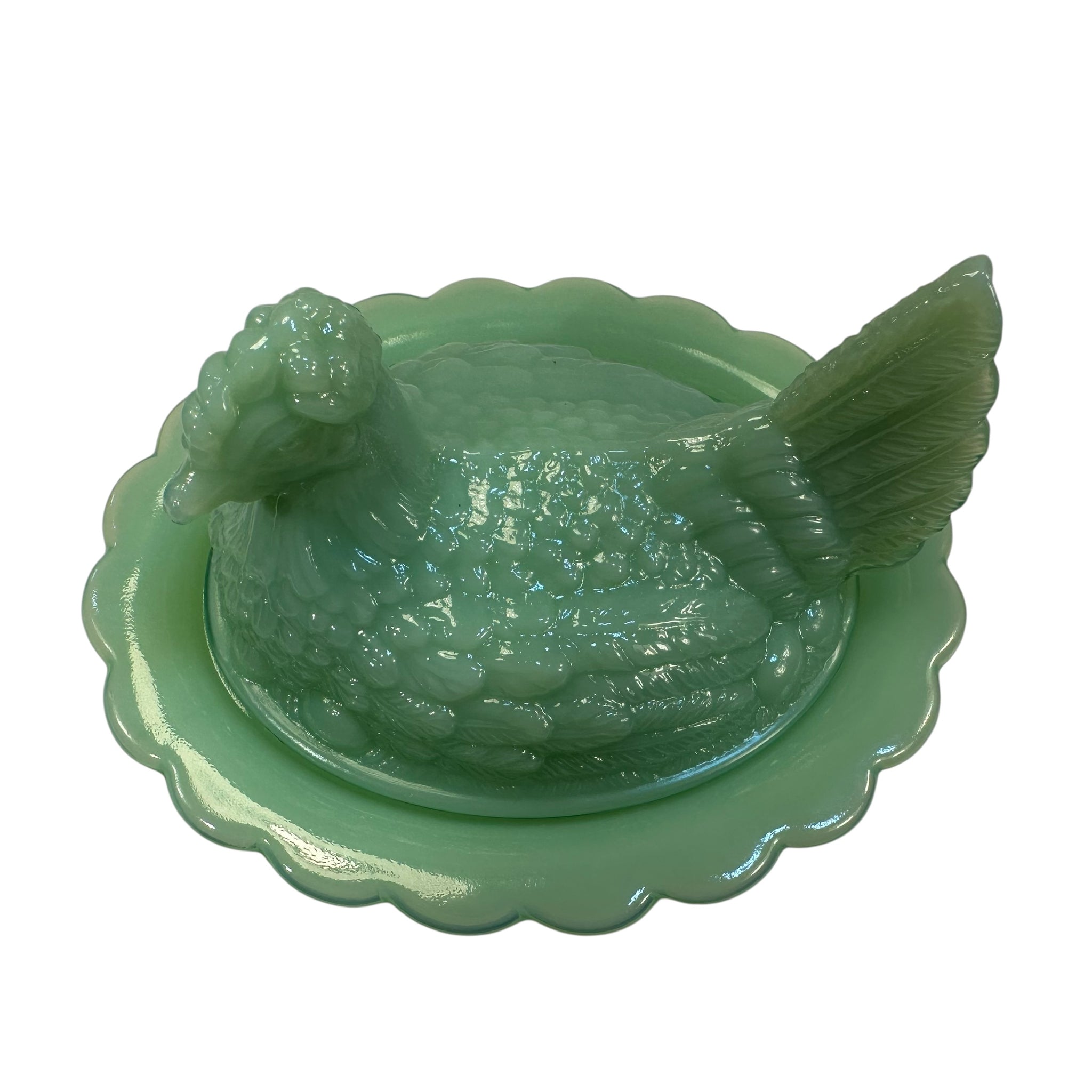 Mosser Hen on Nest Art Glass Jadeite Green Chicken 7” New Farmhouse Covered Dish USA