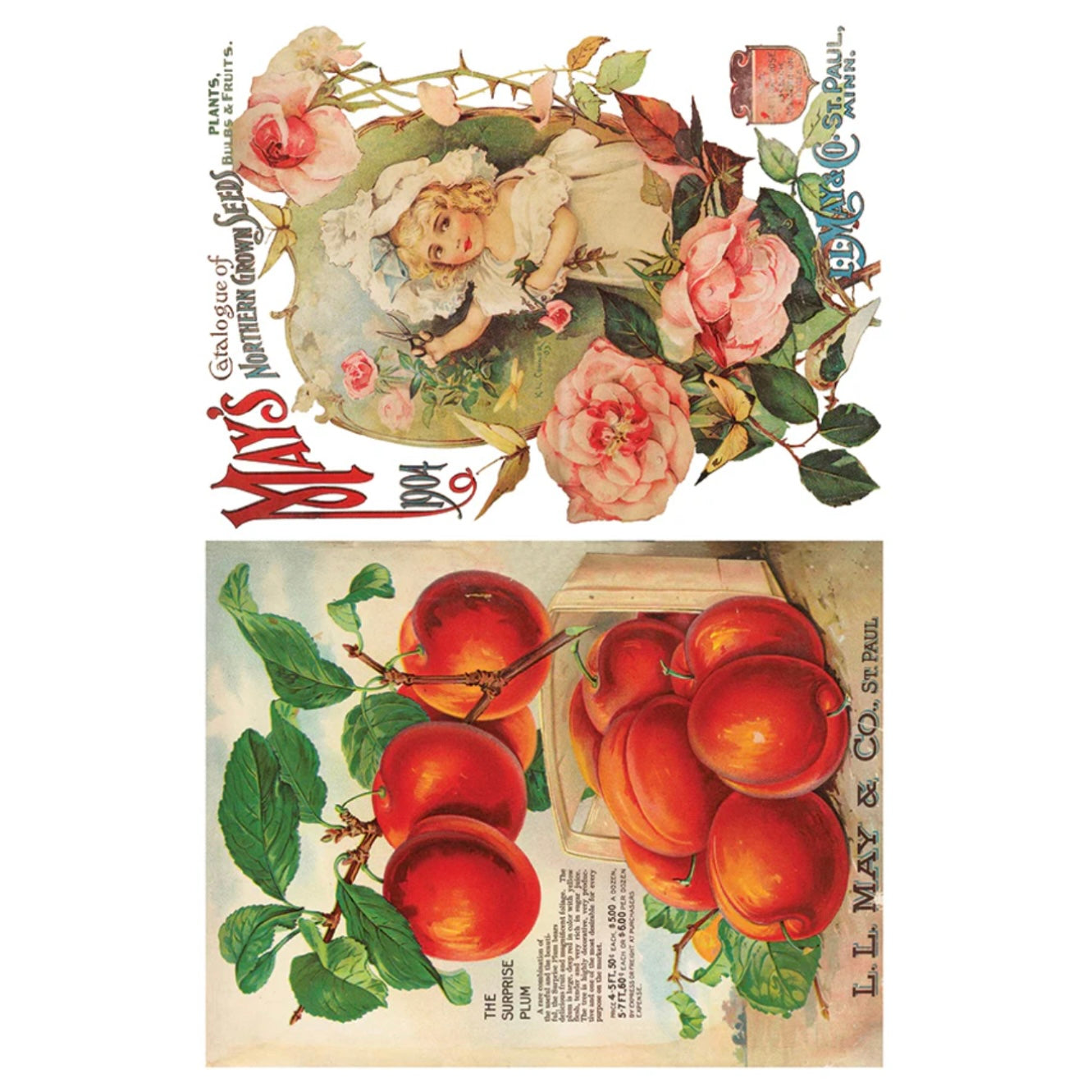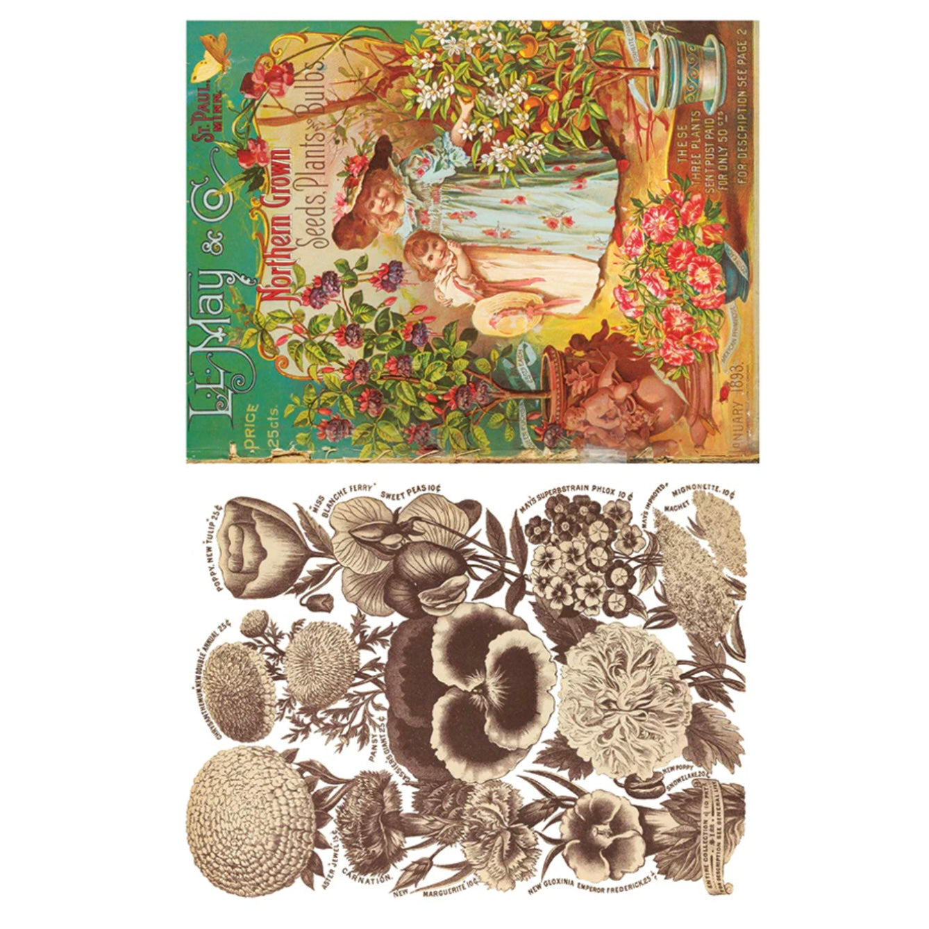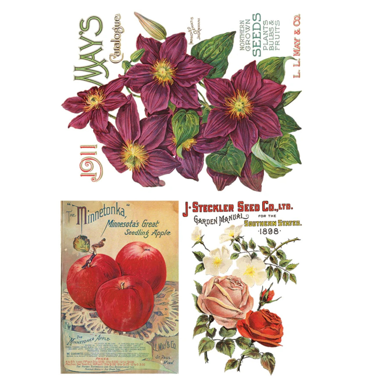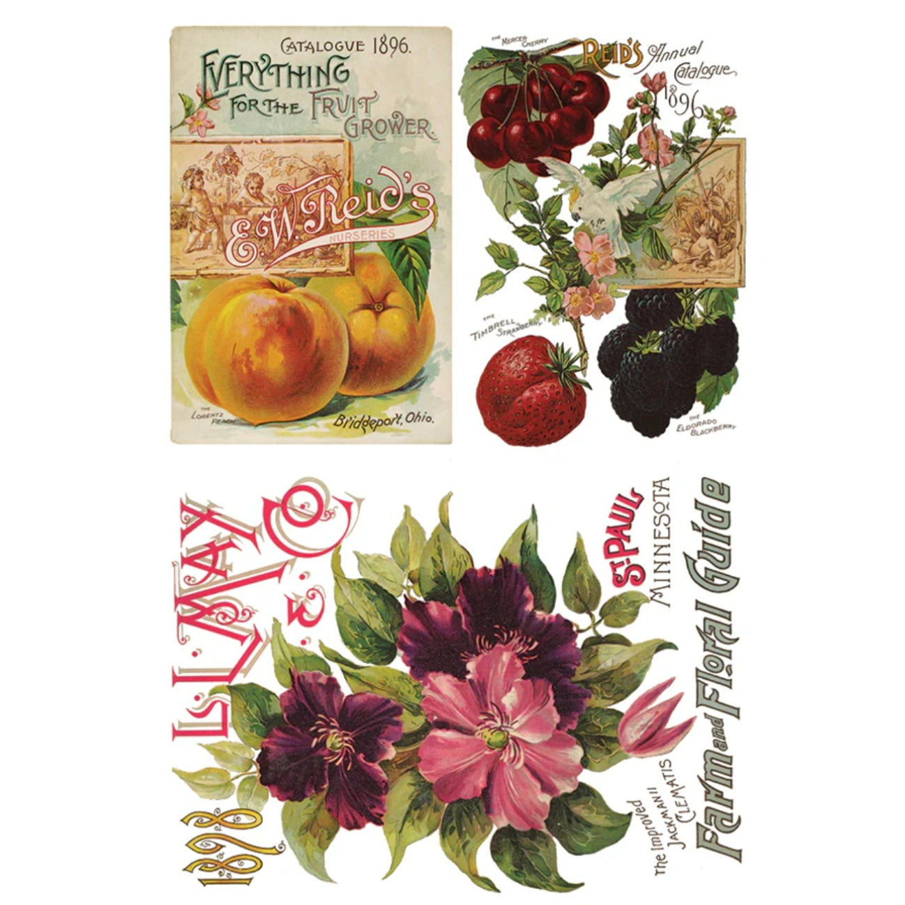 Iron Orchid Designs IOD Seed Catalogue Rub On Transfer 8 Pages, 8” x 12”