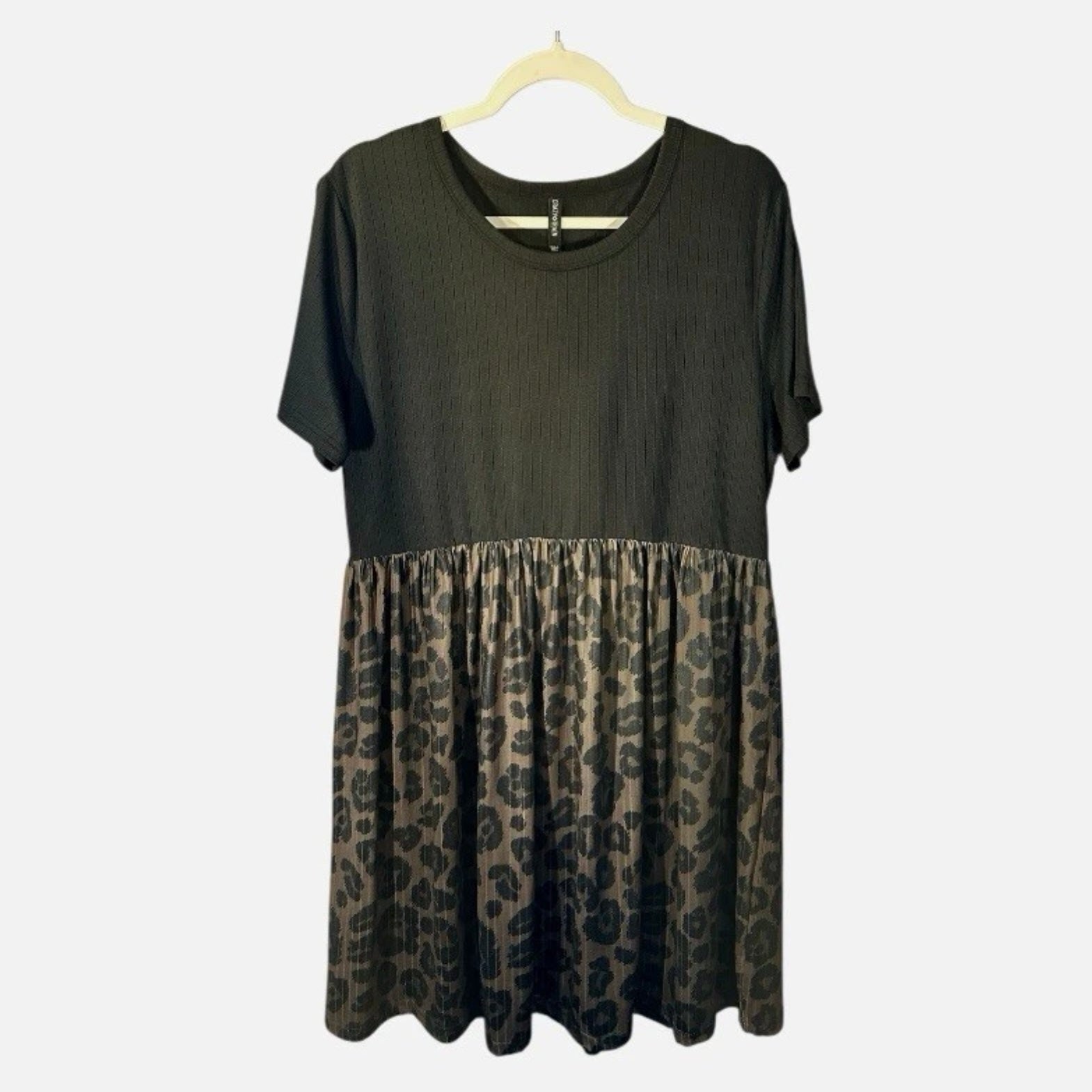 Crazy Train Davis Dress Black Leopard Print High Waist Stretchy Fit & Flare Short Sleeve