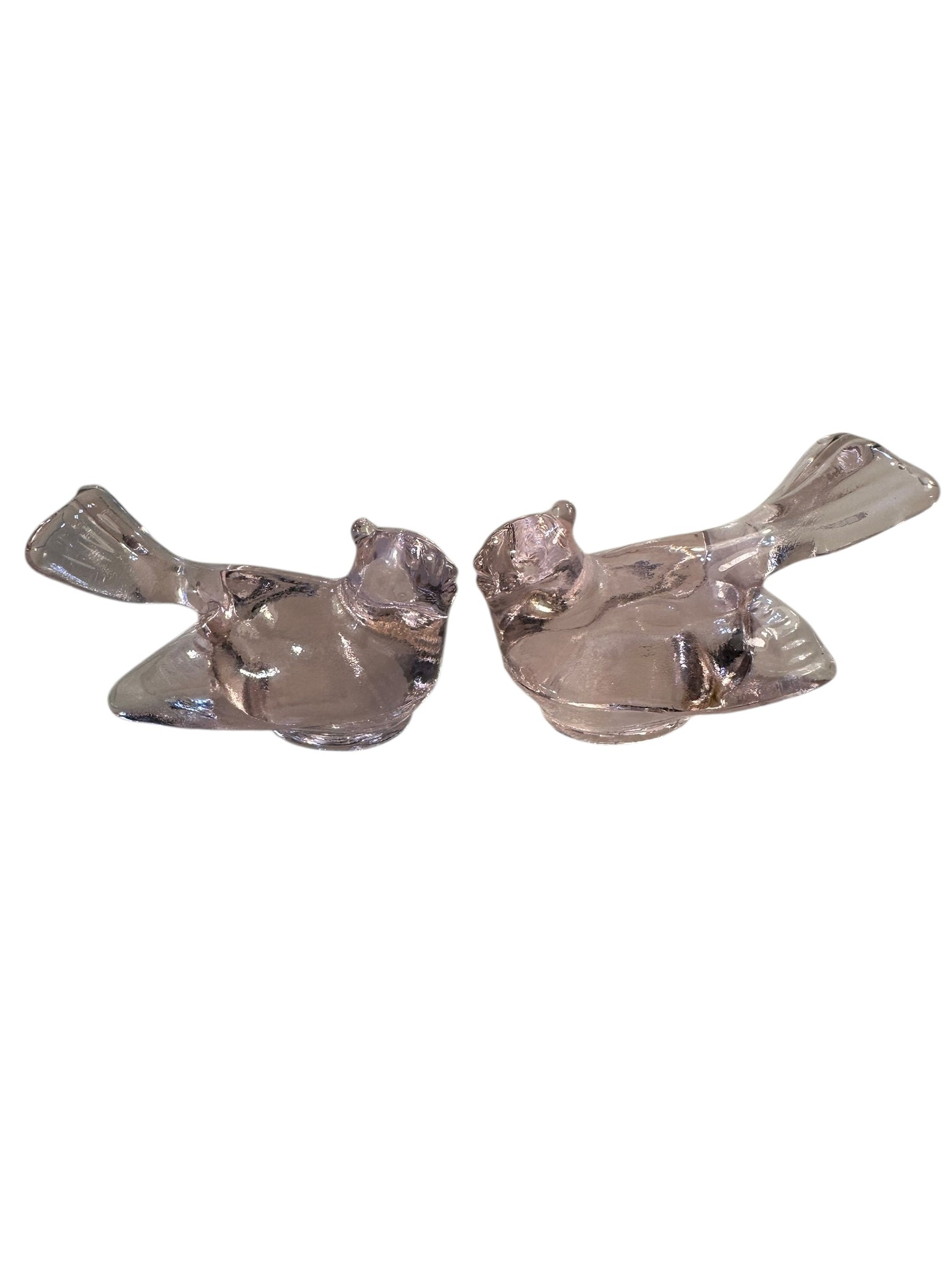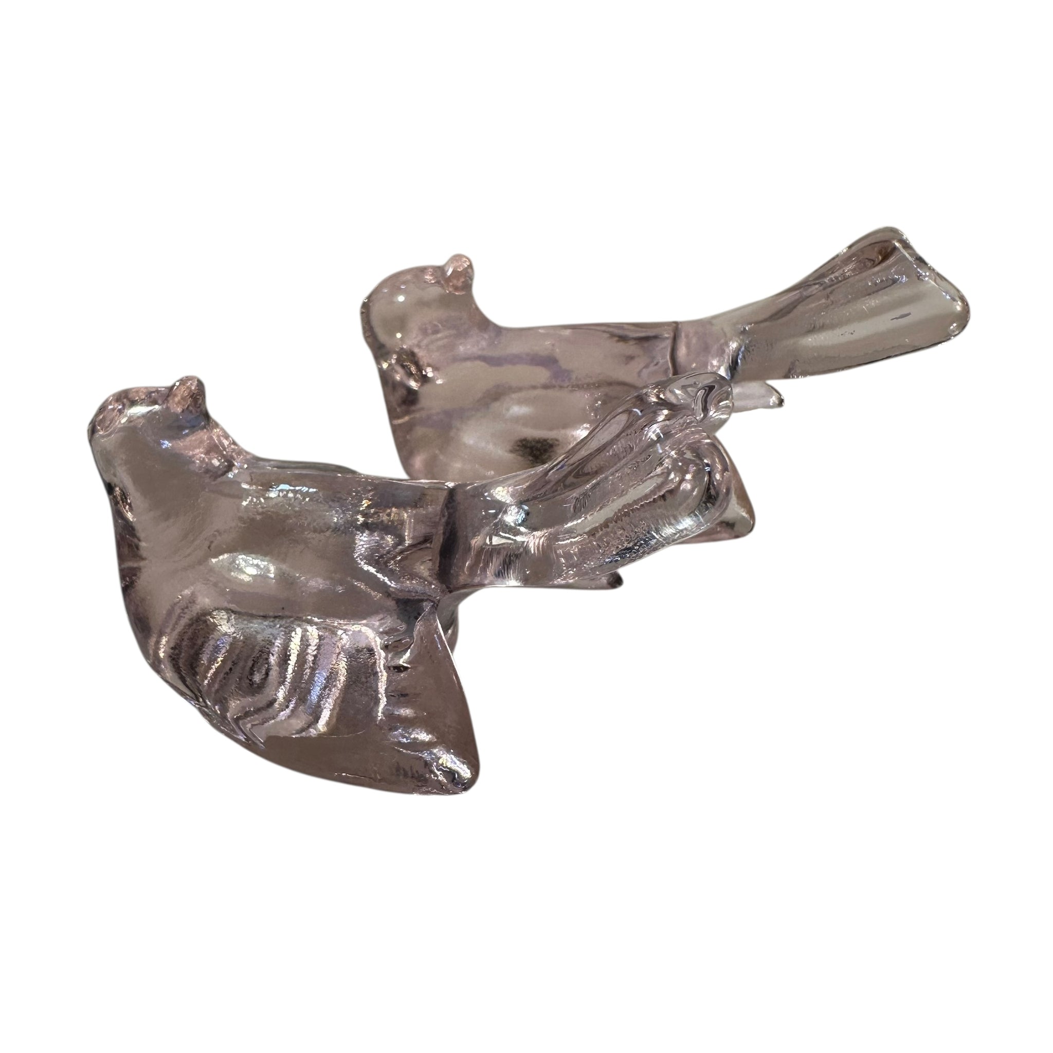 Mosser Birds Art Glass Clear Pink Set of 2 USA 3” Gift New Mother Teacher Sister Daughter