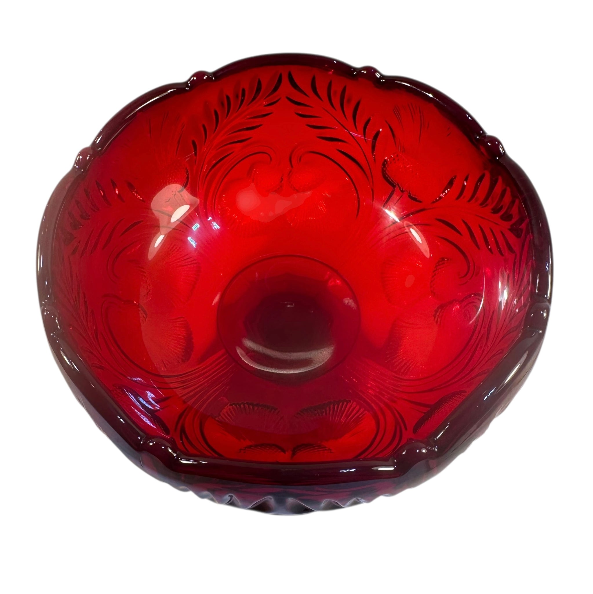 Mosser Ruby Red Glass Compote Pedestal Bowl Vintage style USA 6.5” tall, 6” wide Pedestal New No box |