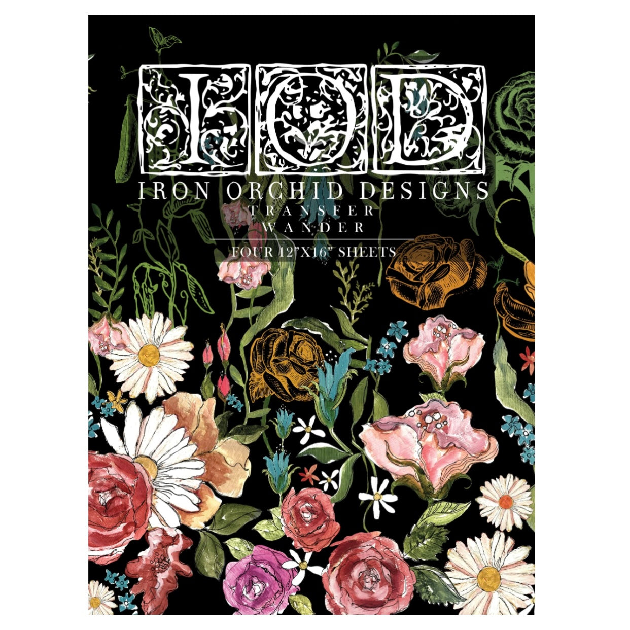 Iron Orchid Designs IOD Wander, Rub On Transfer Pad, 4 Pages, 12” x 16”